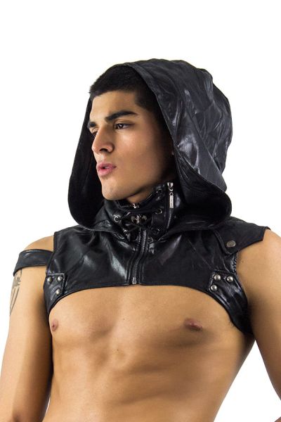 Gothic Hooded Chest Harness in Faux Leather
