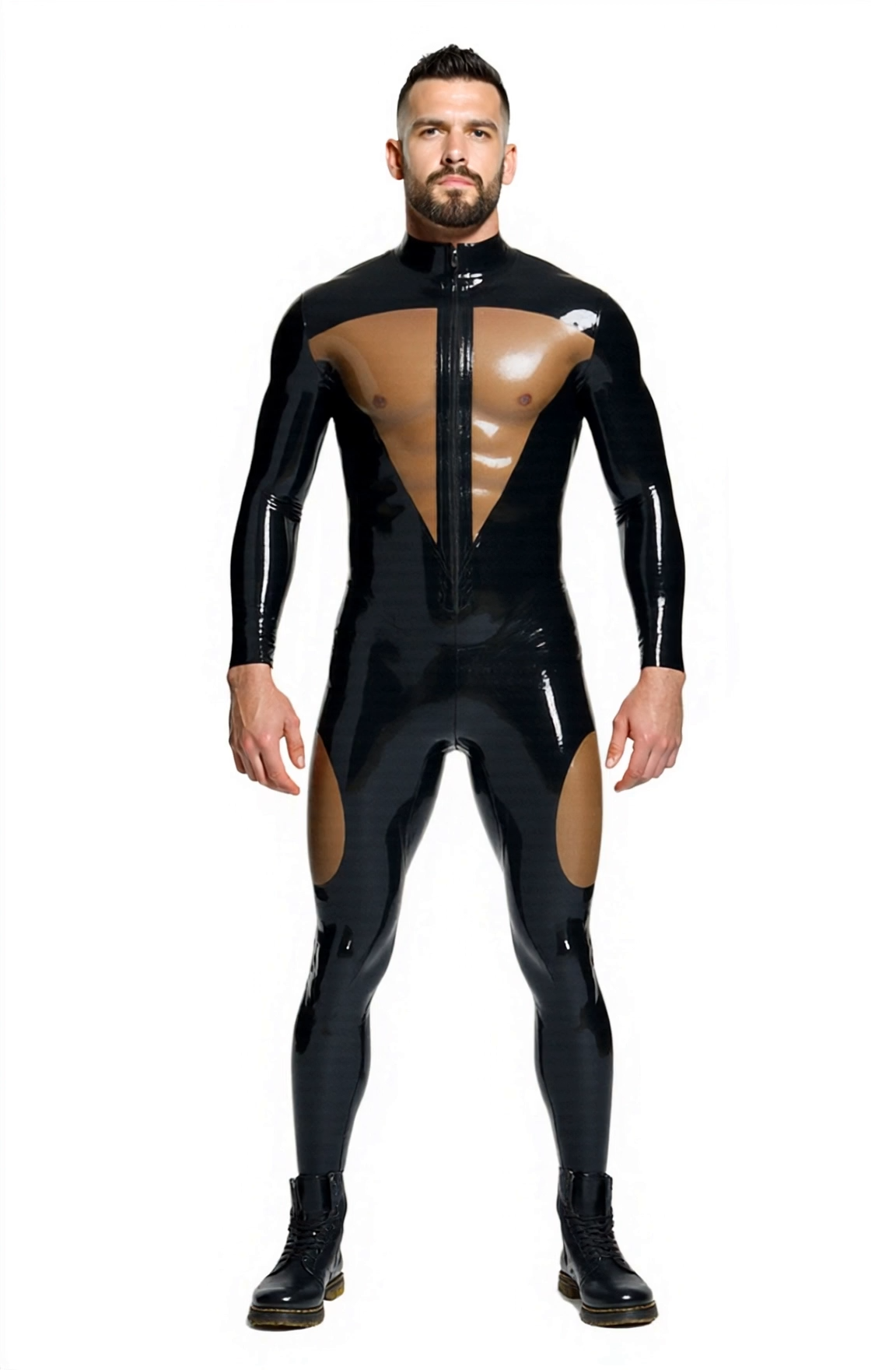 From fetish parties to queer stage shows, this bodysuit is your armor of attraction. The vertical front zipper allows easy entry, while the contoured seams keep you sleek from front to back.