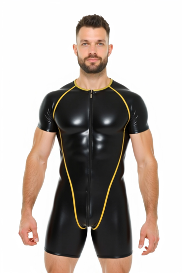 Men's Black and Yellow Performance Bodysuit
